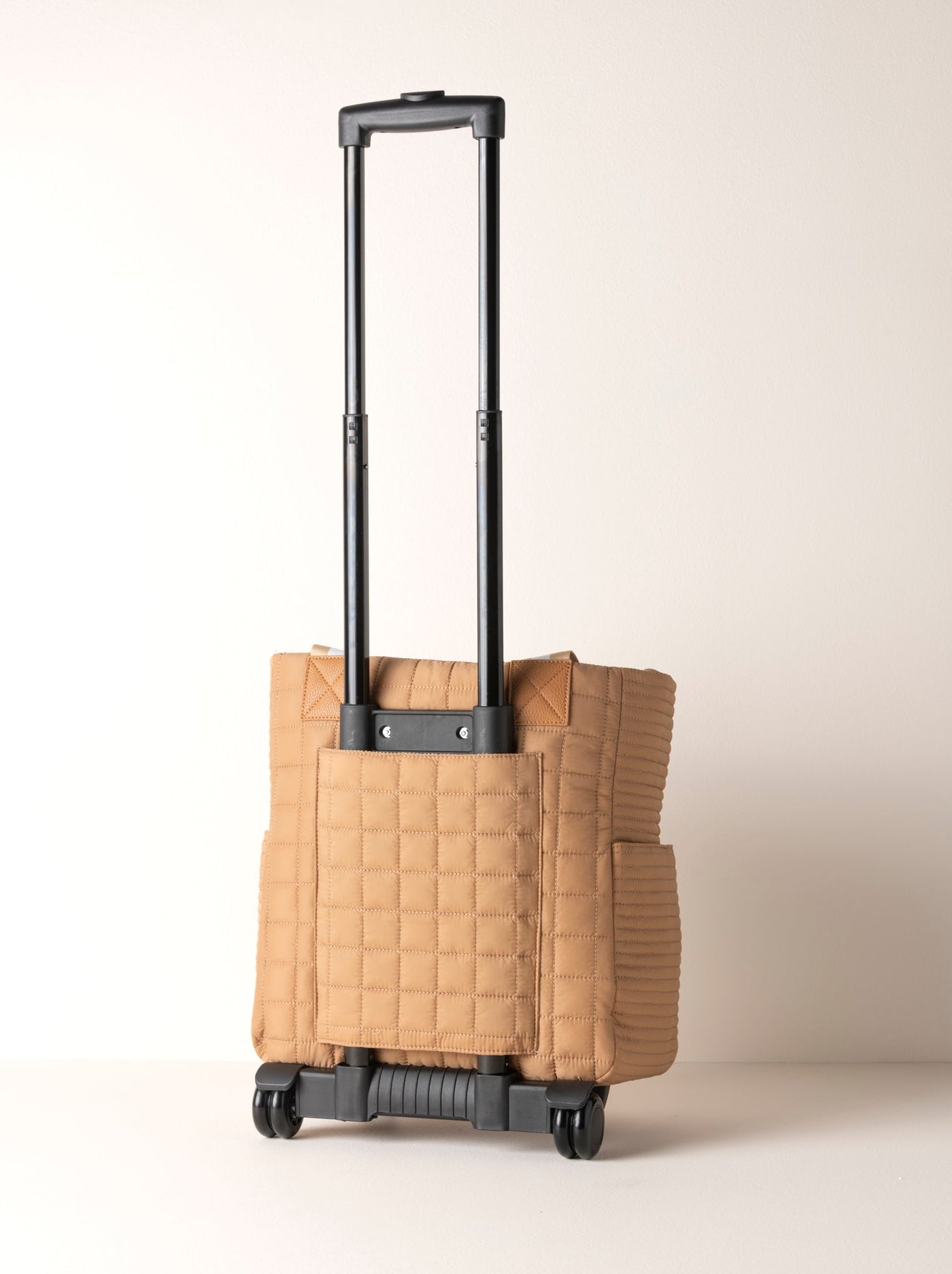 Meet the travel gamechanger: the Ezra Roller Tote! Made from our signature quilted nylon, this roller bag blends style and function like no other. With a roomy interior, multiple pockets, and a smooth pull handle, it’s perfect for jetting off on weekends or strolling through your daily commute. Bonus? It comes in vibrant colorways and stylish prints to make every trip a standout moment.