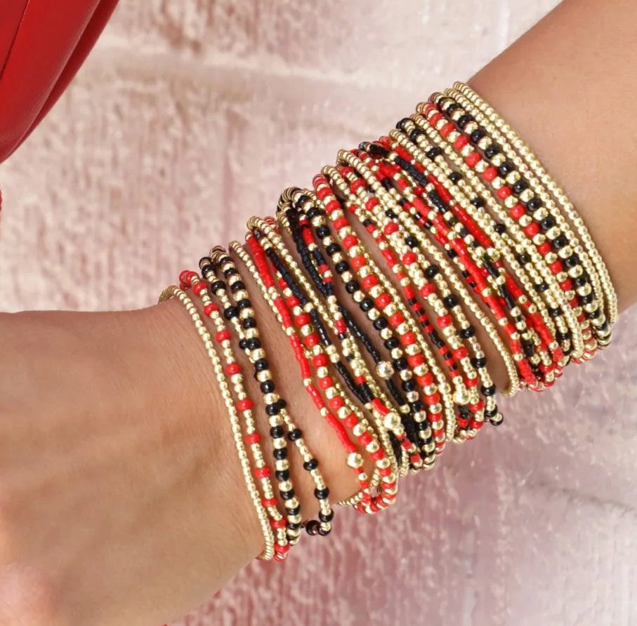 Made with 2mm 14kt gold-filled beads. Worry-free wear‚ which means sleep, shower, and sweat in it. Hand beaded on high-performance elastic for a slight stretch to easily roll on and off your wrist. Measures 6.75`. Stacks well with all bracelets.