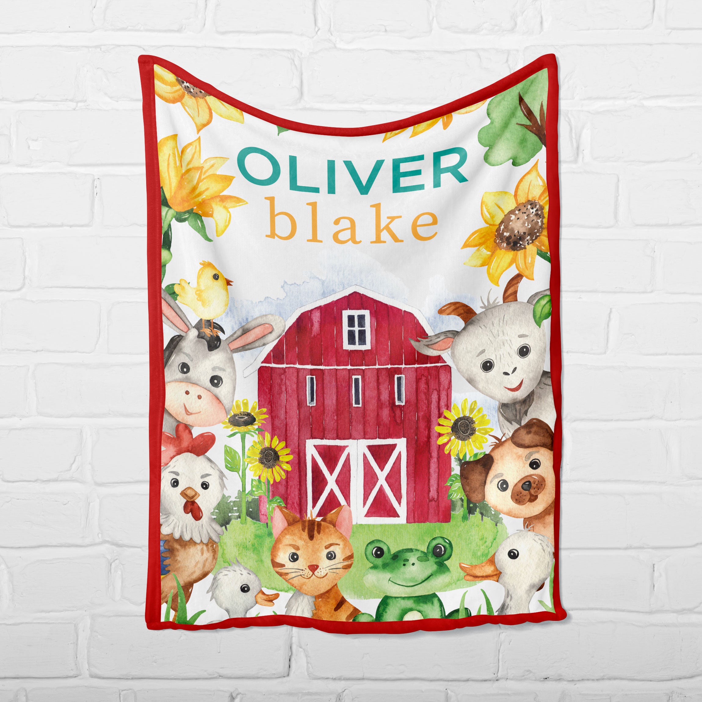 Custom Children's Name Blanket • Farm Animals Watercolor