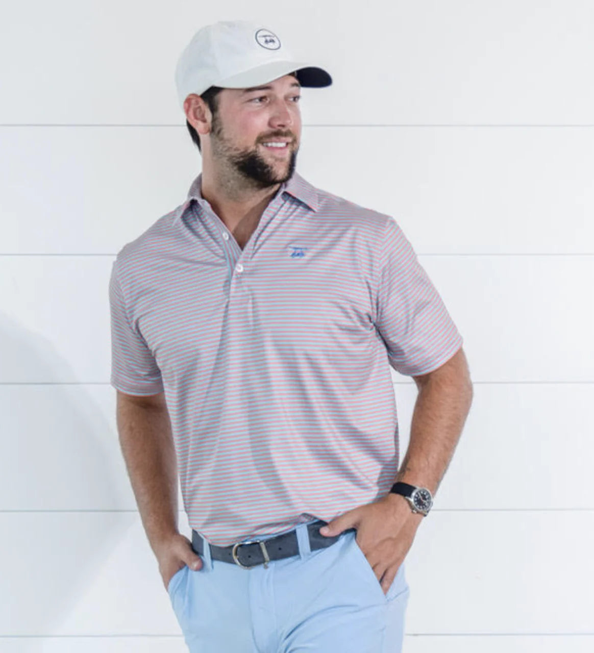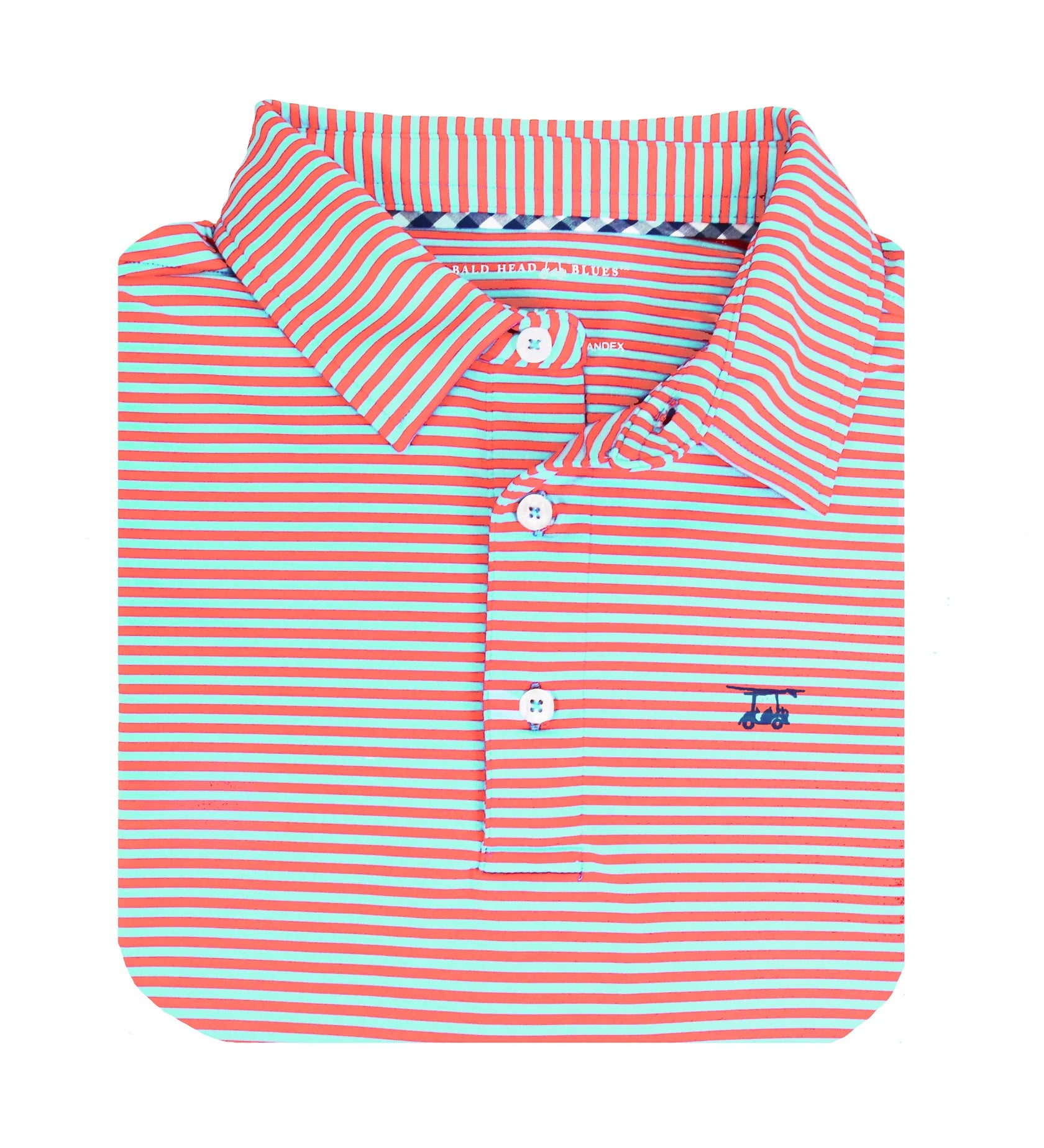 The Albatross polyester golf shirt is inspired by our unique island lifestyle and defined by the simplicity and genius of golf cart only mobility. Our men's polyester polo shirt in blue and navy stripe is super soft with a bit of stretch for comfort and a classic fit. Ages ago, the polo style was created for polo players on horses, but with Bald Head Blues the polyester golf shirt can be worn on the golf course, on the water, or at work. Embody the island lifestyle in the blue and navy stripe Albatross polyester golf shirt and consider wearing underneath one of our quarter zip pullovers for those cooler days.