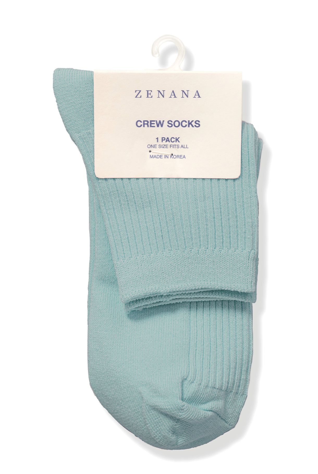 Step into comfort with these ribbed crew socks crafted from a breathable cotton-blend fabric. The stretchy material molds to your foot for a secure, all-day fit, while the ribbed design adds durability and classic style. Made with 80% cotton, 18% polyester, and 2% spandex for the perfect balance of softness and support. Imported from Korea. Please note: color may vary slightly depending on monitor resolution.