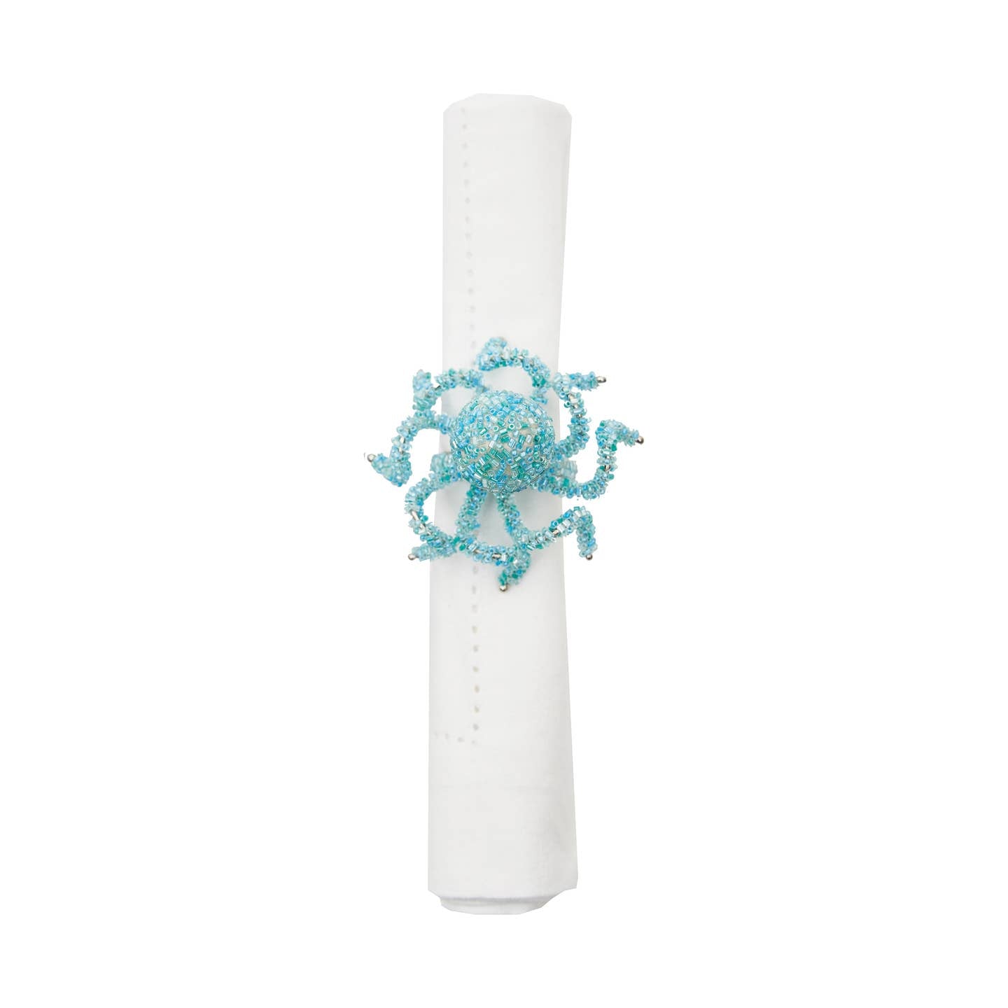 Whether you're planning a party by the pool or just enjoying an everyday meal with coastal style, this blue beaded octopus napkin ring finishes your table with a fun 3D pop! Product dimensions are 3.5" x 3.5" x 1.5". Product is made of Glass.