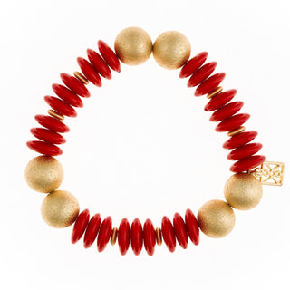 Georgia Bulldogs Pave Disc 2-Row Ball Bead Stretch Bracelet in Shiny Gold