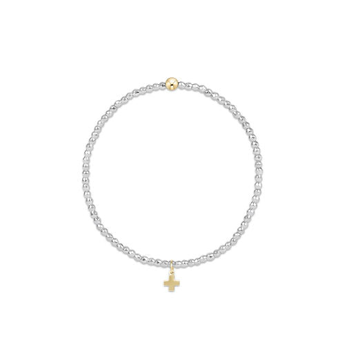 Silver Faceted Hematite 2mm Bead Bracelet - Signature Cross Gold Charm by enewton New! Remember where you came from.