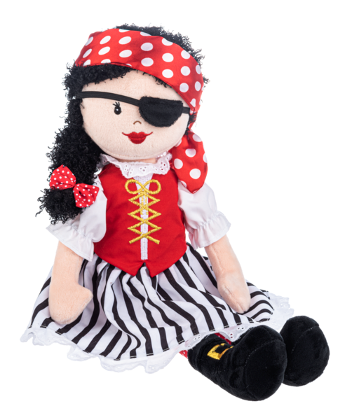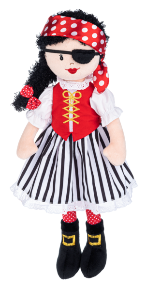 Ahoy, matey! Meet Pirate Priscilla, a swashbuckling 20-inch doll ready for high-seas adventures. Dressed in vibrant multi-colored pirate attire with bold red accents, Priscilla is the perfect companion for imaginative play and storytelling. Whether she's commanding a ship, hunting for treasure, or joining your collection of adventurous characters, this fearless buccaneer brings excitement and personality to playtime. A must-have for young pirates and doll collectors alike!