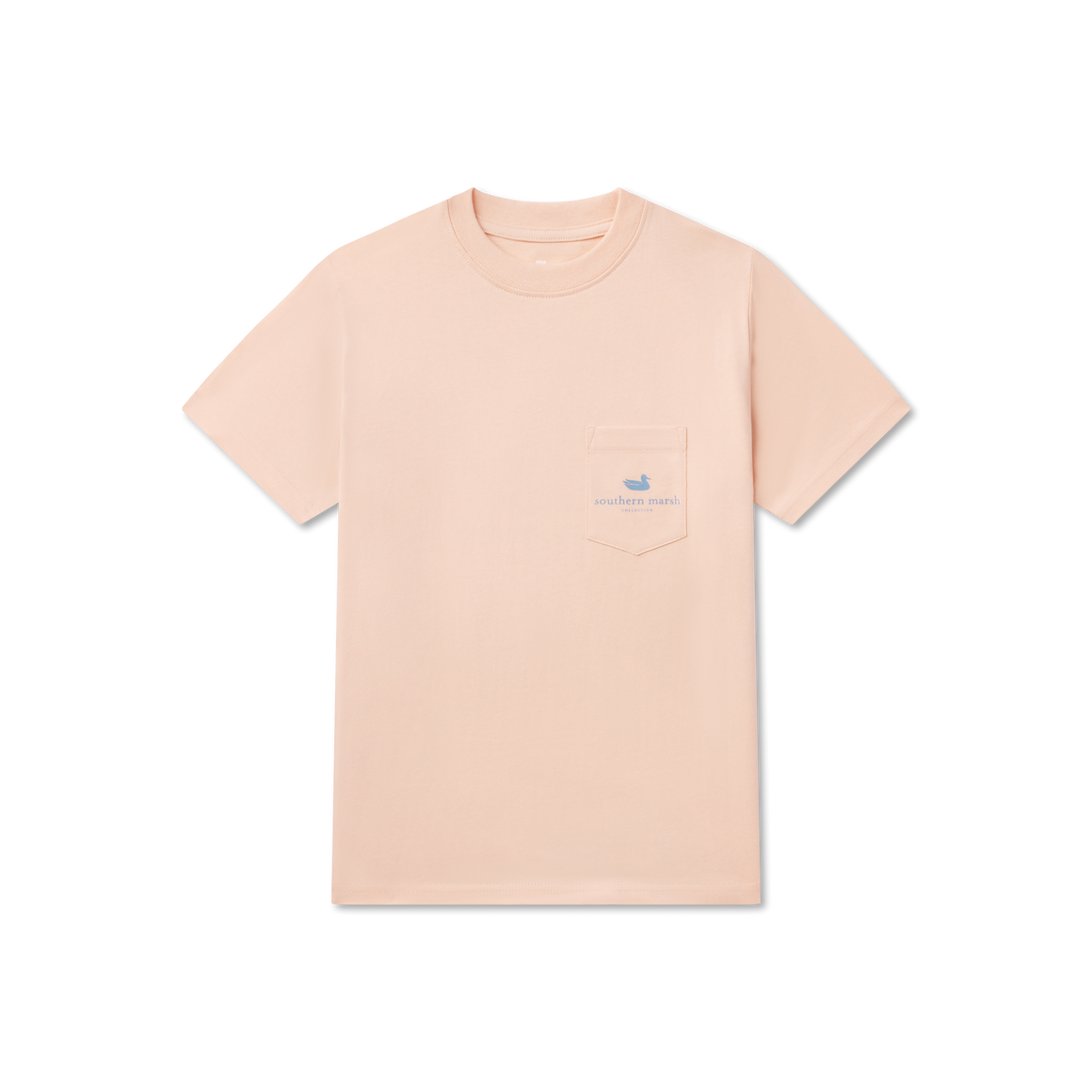 Celebrate life along the water with the Youth Dinner Circle Short Sleeve Cotton Tee, featuring a striking back graphic of a heron framed in a circular emblem with a fish in its beak. Finished with Southern Marsh Mercantile Co. branding beneath the artwork, this design captures the quiet beauty and natural rhythm of coastal living in a way kids will love. Made from soft, breathable cotton in a comfortable youth fit, this tee is perfect for school days, outdoor play, or laid-back weekends. Whether they’re near the marsh, on the dock, or just enjoying everyday adventures, this shirt delivers all-day comfort and timeless Southern style.