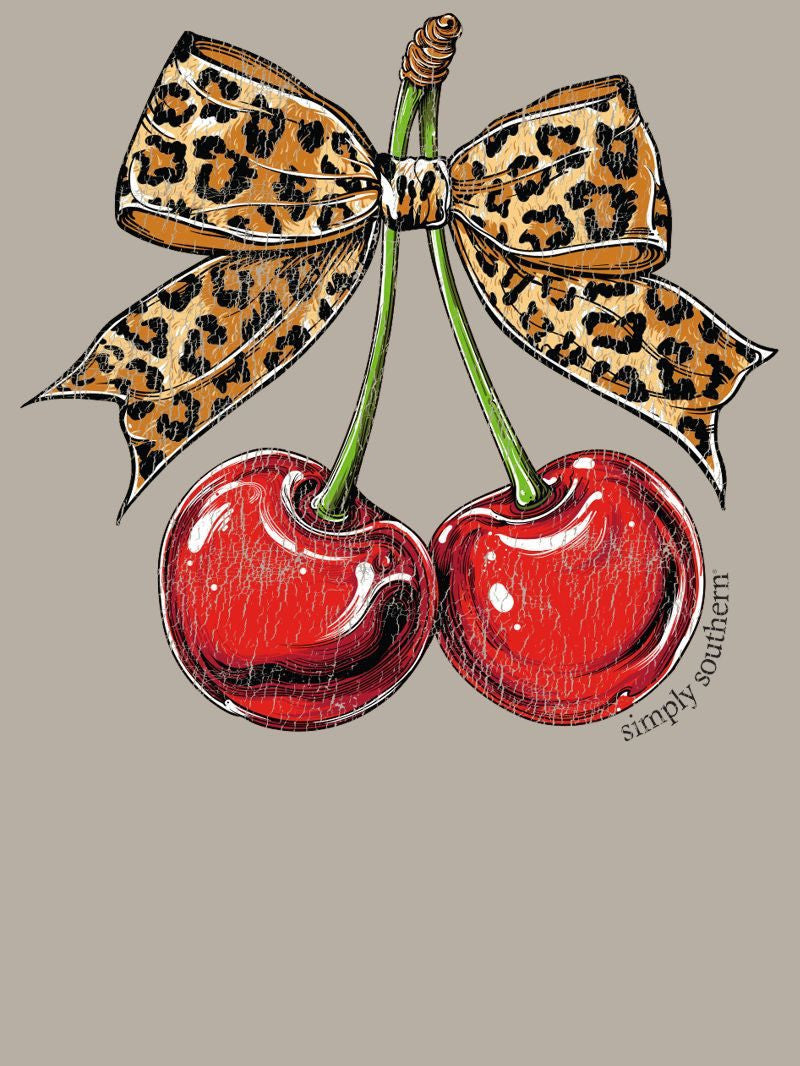 Made from 100% heavyweight cotton, this short sleeve mineral washed tee delivers structure and comfort. This birch tee features a pair of cherries topped with a leopard print ribbon.