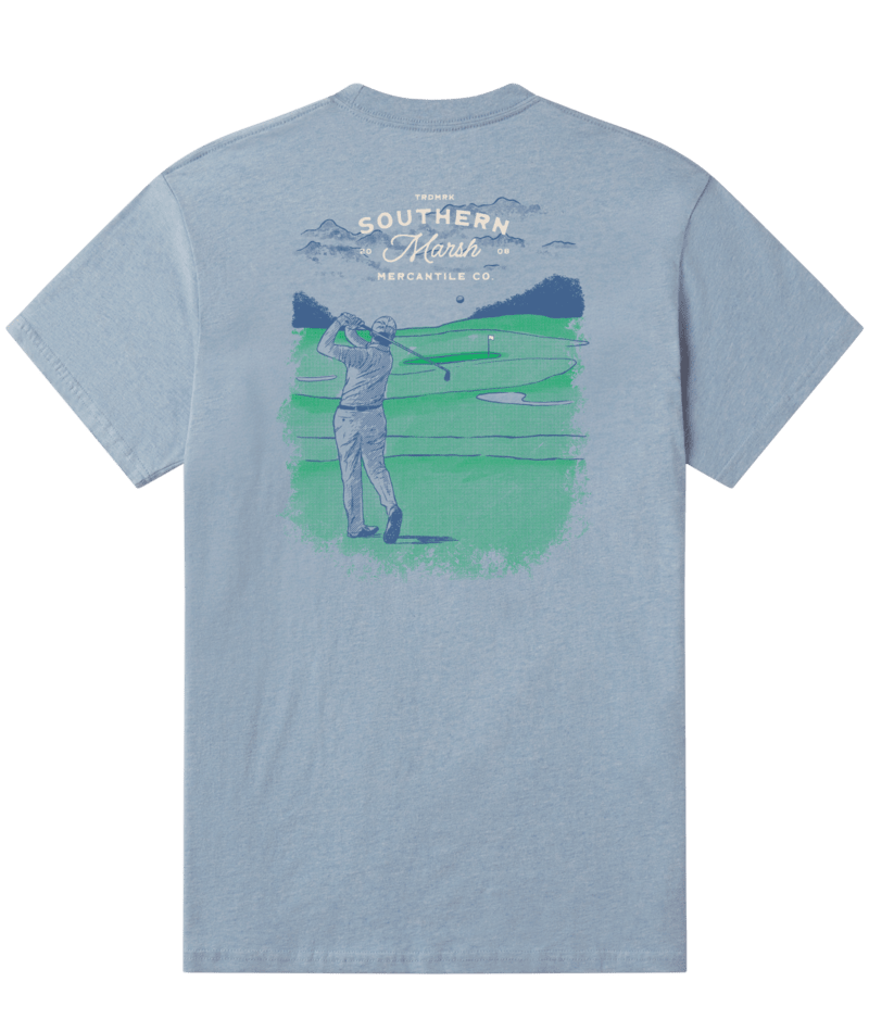 Perfect for young golf enthusiasts, this classic tee features a striking golf scene graphic on the back. Crafted from 100% cotton, the washed sky blue fabric offers a soft, comfortable fit ideal for everyday wear or the course. The relaxed cut and breathable material make it a versatile staple for any youth wardrobe.