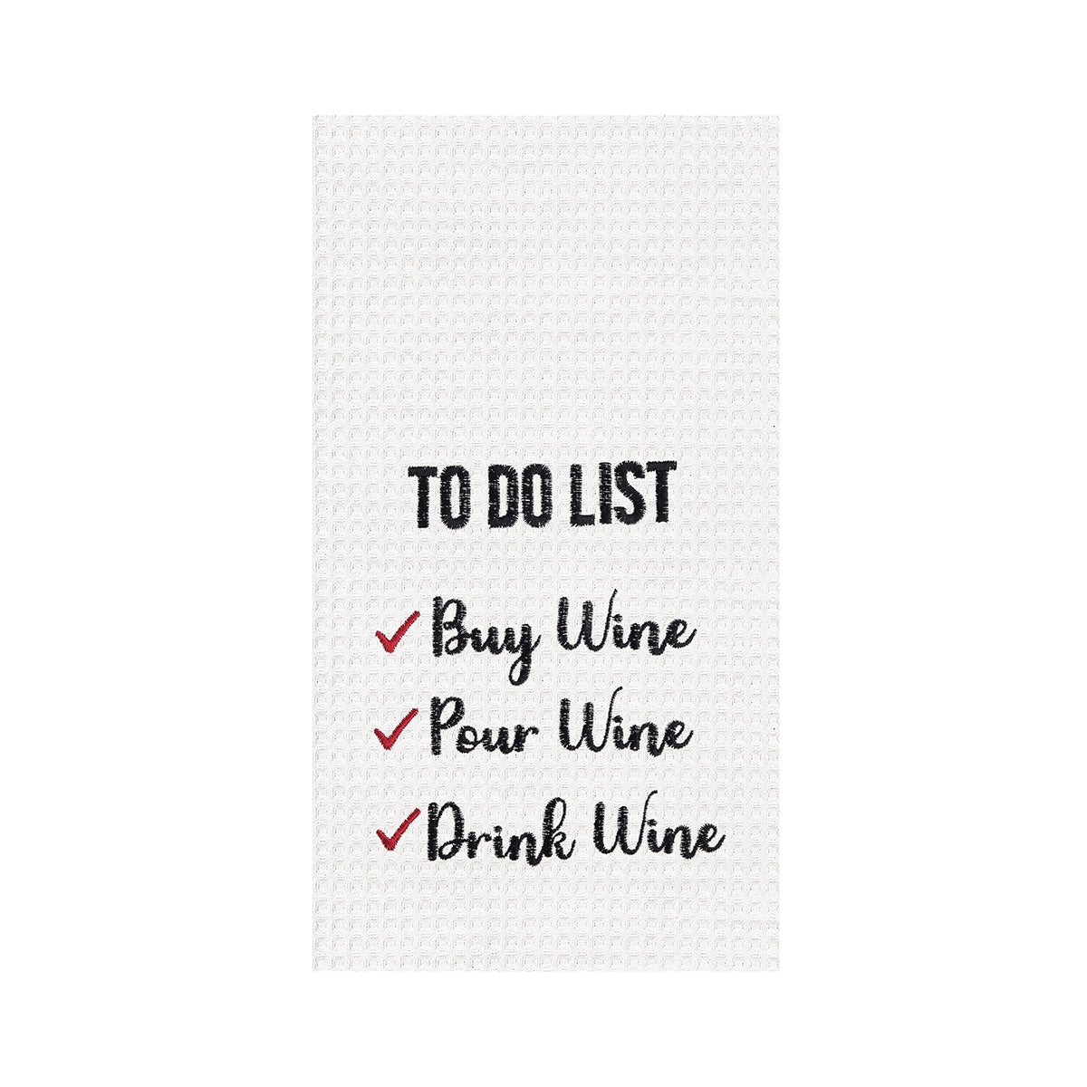 C&F Home s To Do List Embroidered Waffle Weave Towel is a hilarious addition to any kitchen. It's made from cotton and features a cheeky, embroidered to do list of buying, pouring, and drinking wine! It's a must-have for any wine-loving home chef. Cheers!