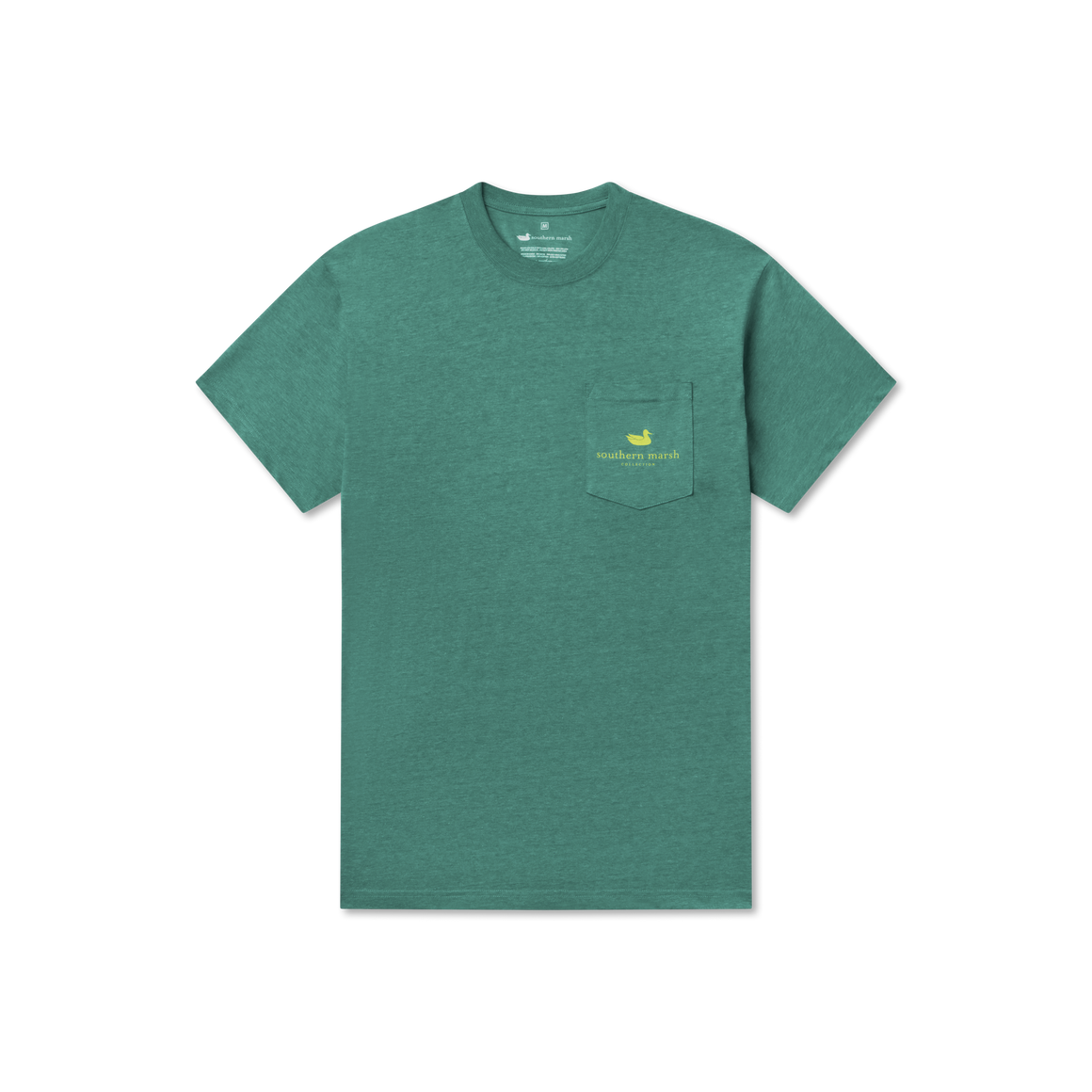 Keep your look classic and effortless with our Branding - Flagstick Short Sleeve Seawash Tee, designed for everyday comfort and timeless style. Crafted from a soft polyester and cotton blend, it offers lightweight breathability and durability that’s ideal for all-day wear. The back features bold Southern Marsh lettering with a clean, heritage-inspired design, finished with a subtle flag detail that adds a touch of tradition. Simple yet striking, this graphic makes the tee easy to pair with anything from shorts to jeans for a relaxed, put-together look. Perfect for weekends, travel days, or casual outings, this shirt is a reliable staple you’ll reach for again and again.