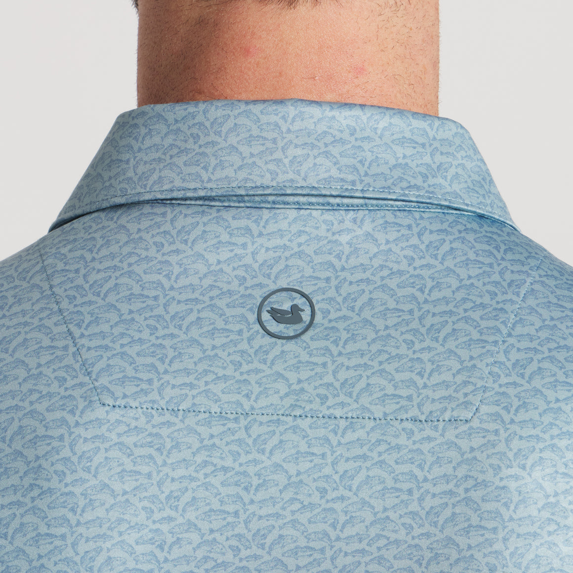 Perfect for that person in your life who loves to fish, our Flyline Performance Polo - Redfish boasts an all over micro print featuring a custom drawn redfish pattern. This moisture wicking polo is crafted from a performance blend fabric that has a comfortable 4-way stretch fit, transitioning easily from the office to the outdoors.