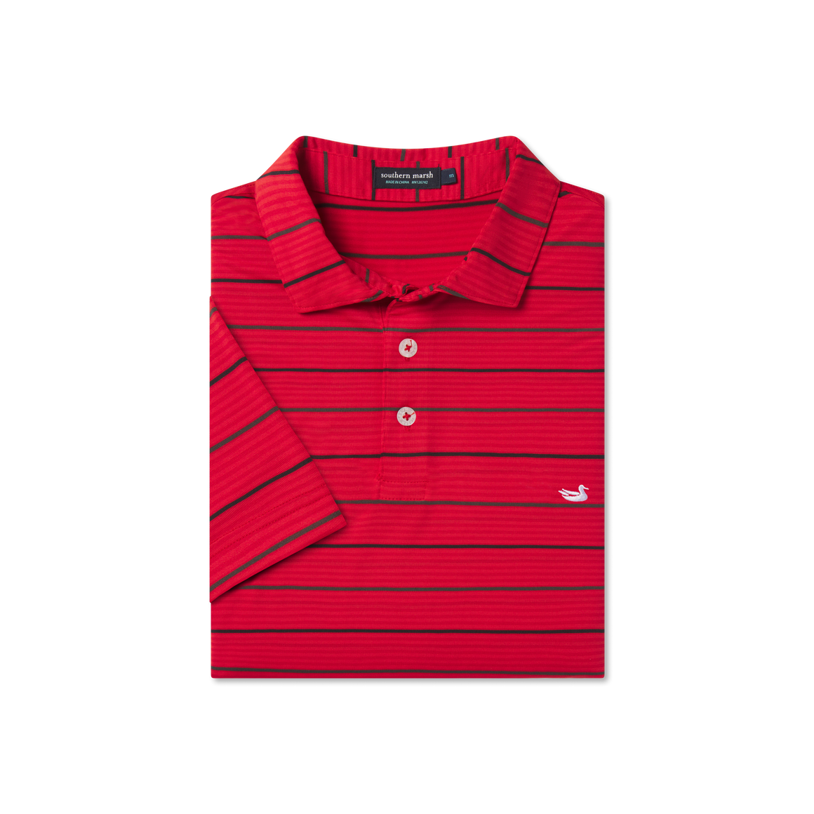 Gridiron Stripe Performance Polo | Red + Charcoal