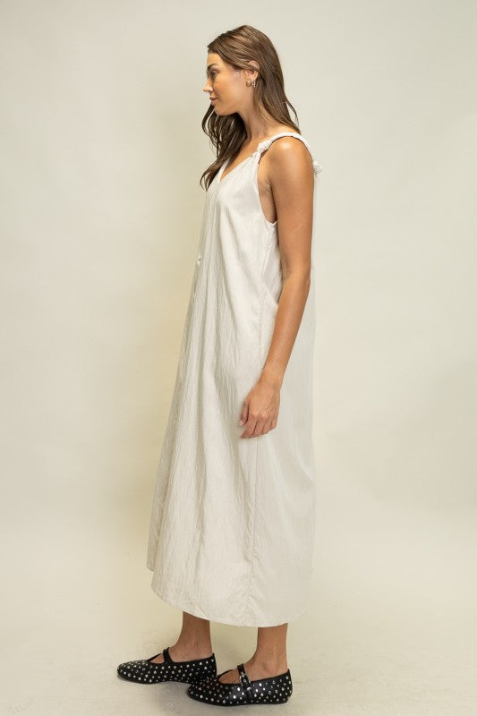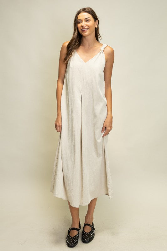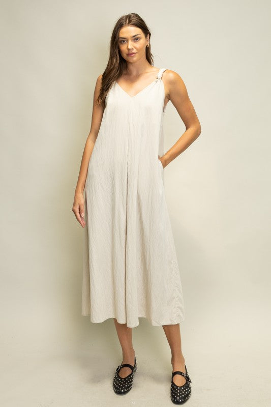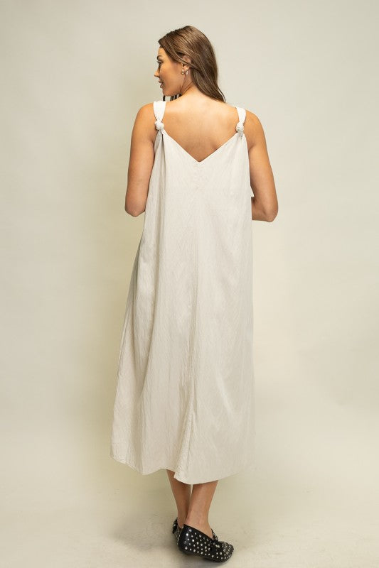 Elevate your boutique's collection with this effortlessly chic Knot-Strap Midi Dress! Perfect for the modern woman who appreciates both comfort and style, this dress is a versatile and elegant addition to any wardrobe. Key Features: - Knot-Strap Detail: Features stylish knotted straps that add a unique and charming touch to the dress. - Flowy Silhouette: The loose, flowy silhouette ensures all-day comfort and ease of movement. - V-Neckline: The flattering V-neckline enhances the dress's elegant appeal. - Midi Length: The midi length offers a versatile style that can be dressed up or down for any occasion. This dress is perfect for your customers seeking a blend of relaxed elegance and modern style, ideal for any casual outing or special event!