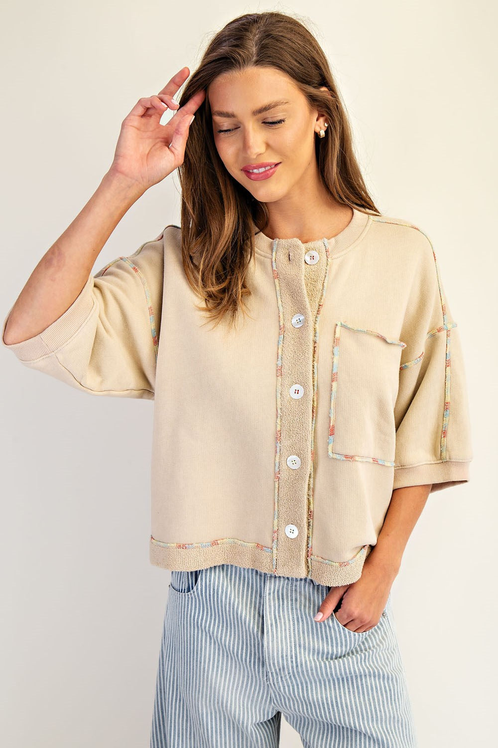 Enzyme Washed Terry Knit Button Down Top • French Vanilla