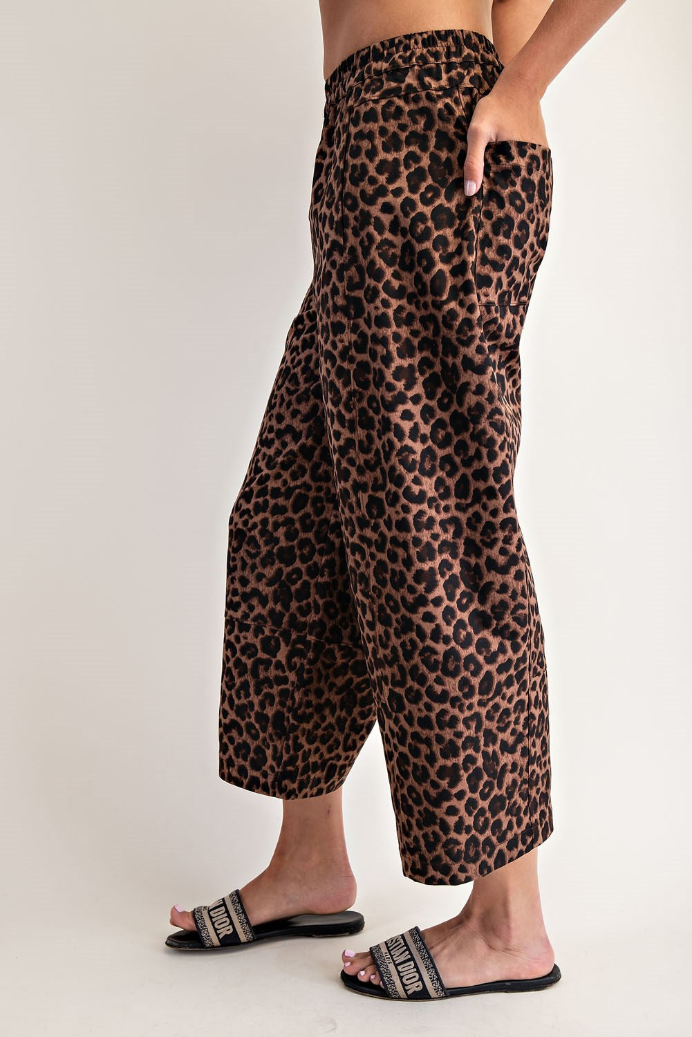 Product Detail: These soft washed leopard print pants feature an elastic waistband with a relaxed fit, side and back patch pockets, and a cropped straight leg silhouette for an effortlessly bold and laid back look.