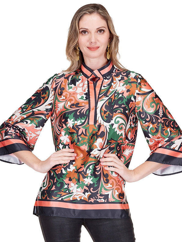 Bring a splash of autumn charm to your wardrobe with this playful Placket Tunic. Its easygoing fit and classic placket detail make layering a breeze, while the whimsical scroll pattern adds a touch of seasonal fun. Perfect for cozy days or casual outings, this tunic blends comfort with a hint of spirited style.