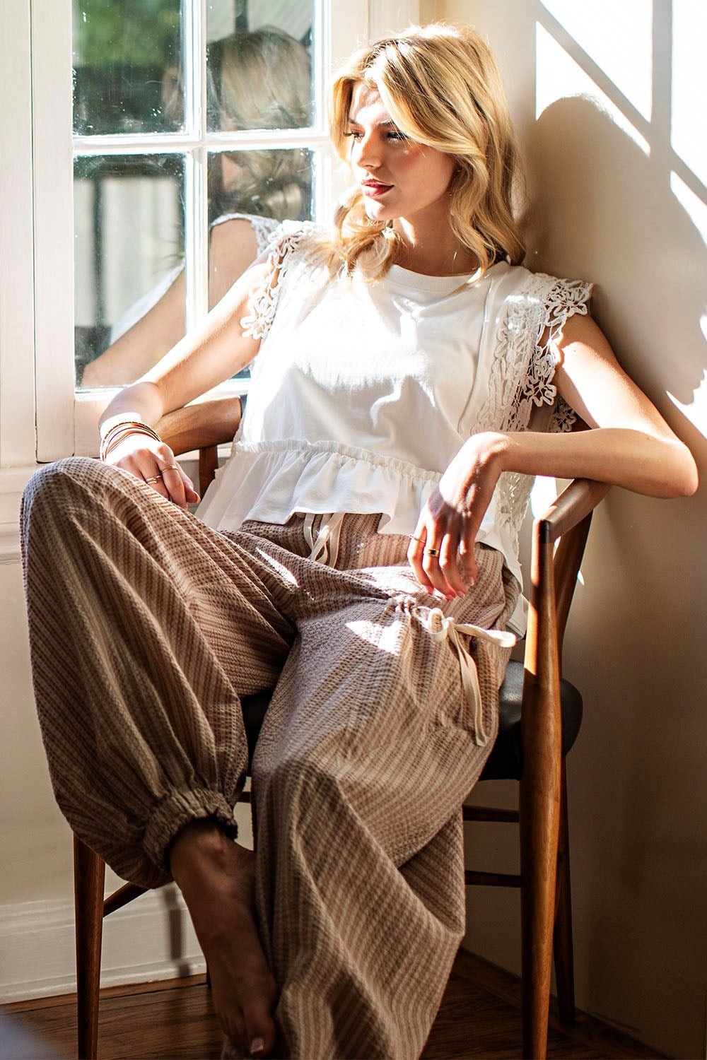 Pair with Top Side Lace Trim Ruffle Hem Top • Off White