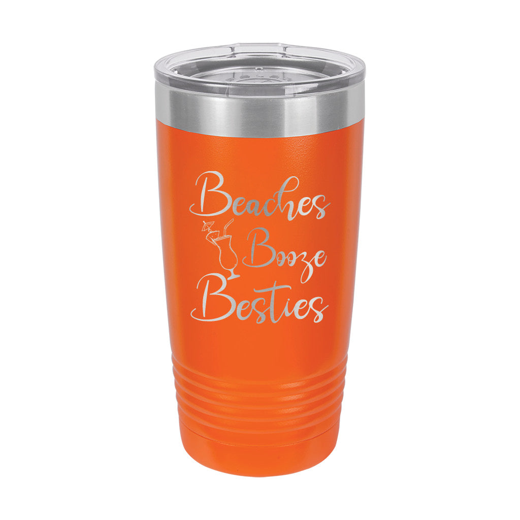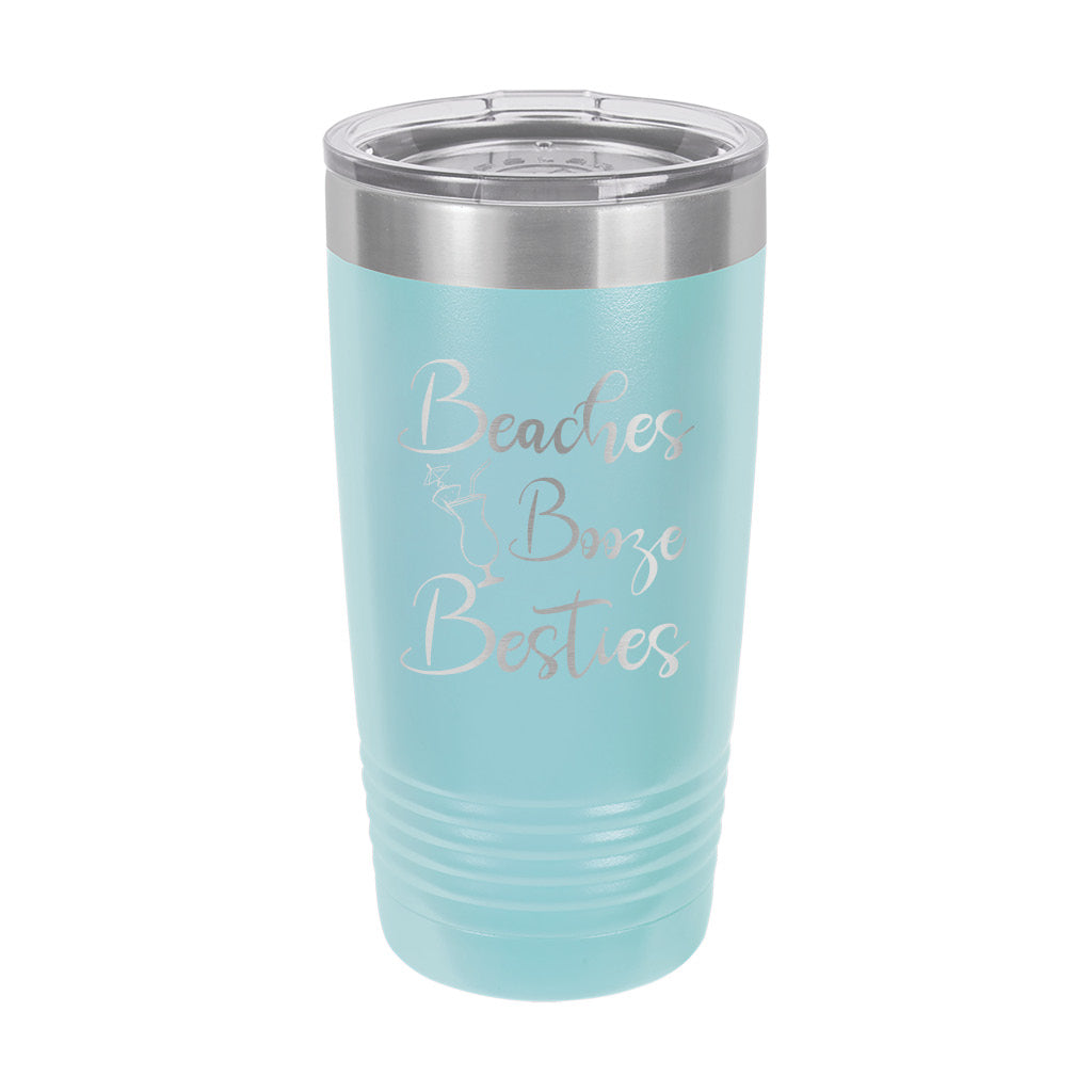 Stainless Steel 20oz. Powder Coated Tumblers with our Exclusive Tonya's Treasures design lasered into them! Available in 9 colors! Fits most cup holders. Not dishwasher safe. Add your choice of lasered monogram on the reverse side for just $15!