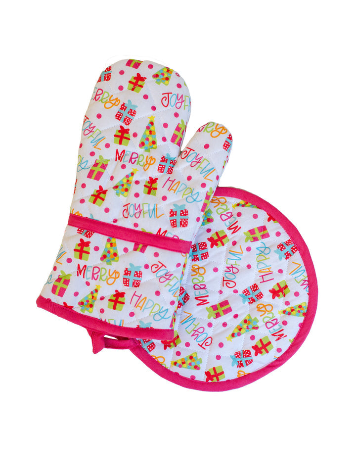 From gifting to entertaining our holiday collection will bring the fun! Our Happy Joyful Potholder Set is a festive and functional addition to your kitchen, making baking with loved ones this holiday season a joy.