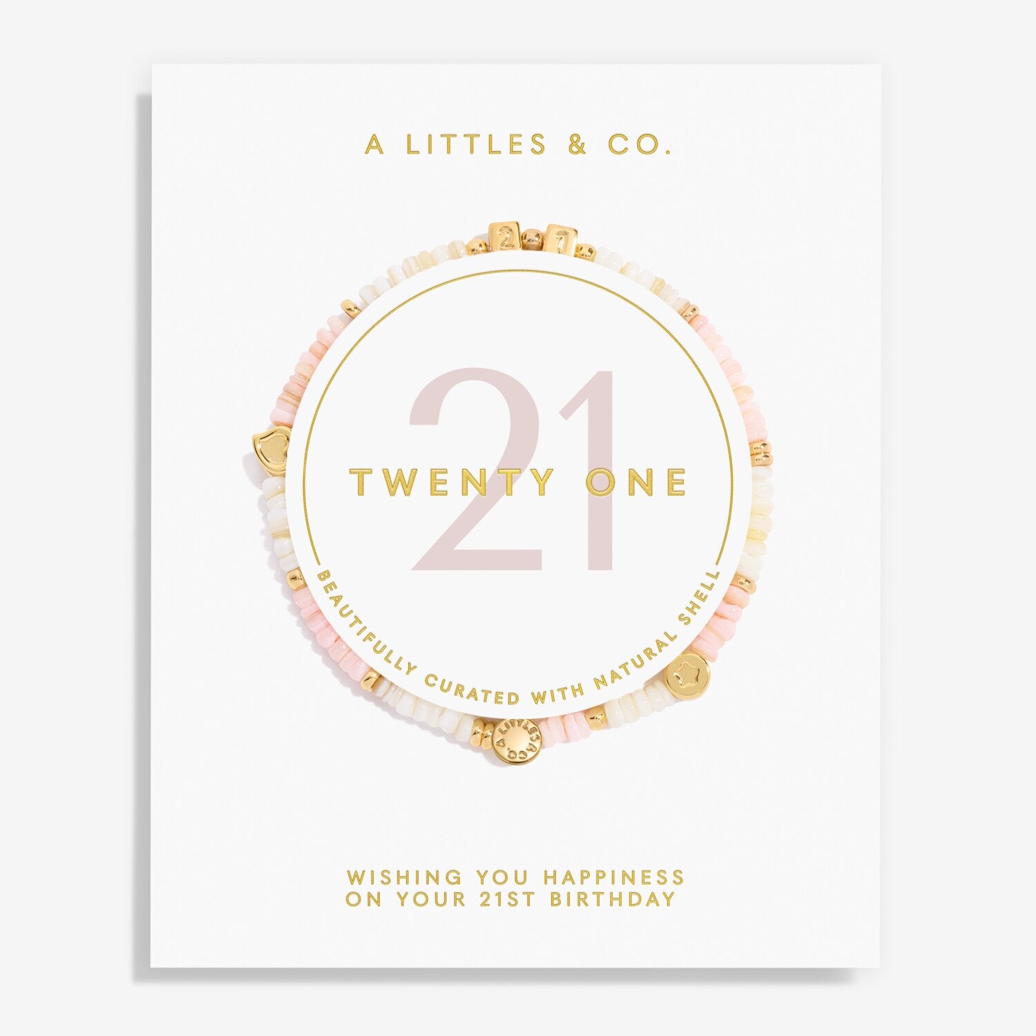 Radiate the best vibes all season long with the Happy Little Moments Collection! Threaded with multicolored natural shells, shining alphabet beads, twinkling charms, and coastal motifs, these beautiful bracelets have been designed with love. Sitting pretty around a buttercream presentation card stamped with a golden sentiment, our Happy Little Moments '21st Birthday' Bracelet In Gold-Tone Plating is the perfect little token to celebrate their special day.