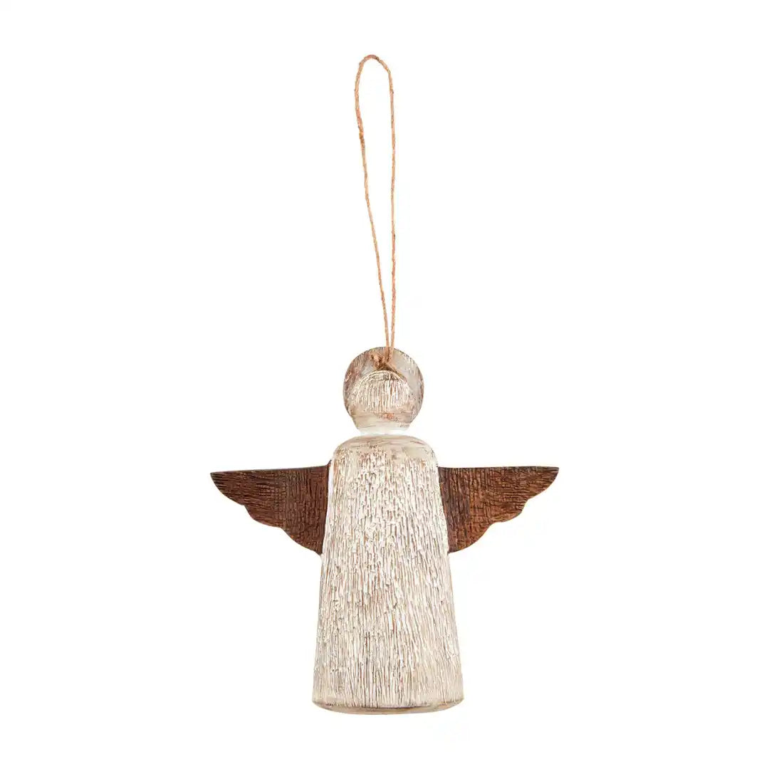 Spread love this Christmas season with our exquisite Multi Wood Angel Ornament. Crafted with intricate carved details, this beautiful ornament is made from sustainably sourced mango wood. Its distressed finish and unique markings add a touch of rustic charm. Measuring 4 1/2" x 4 1/2", this ornament seamlessly integrates into your home decor, bringing a warm and inviting atmosphere to your holiday celebrations. It also serves as a thoughtful and meaningful gift, spreading joy and happiness to your loved ones. Experience the true spirit of Christmas with our Wood Angel Ornament.