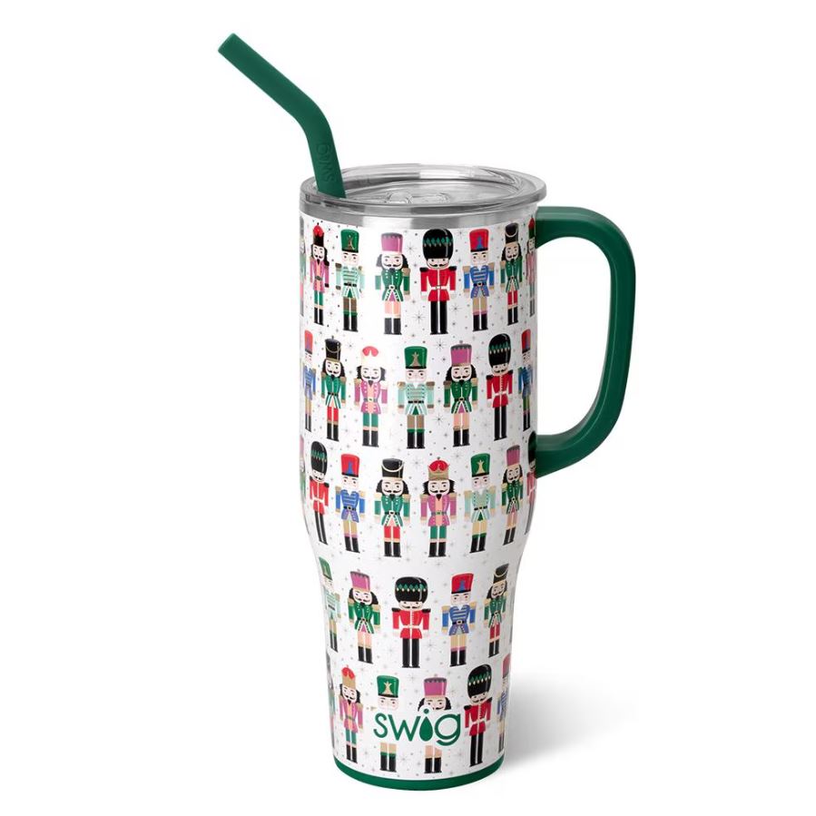 Mega sips, Mega chills! 🧊 Get crackin' on Christmastime with this playful pattern of whimsical nutcrackers, drums, and sweet candies.