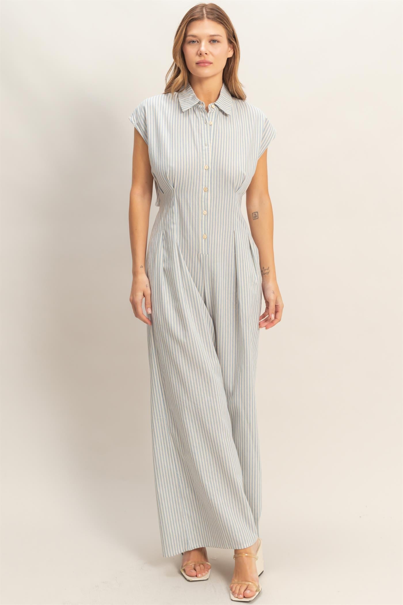 Pixie Striped Button Down Jumpsuit • Light Blue