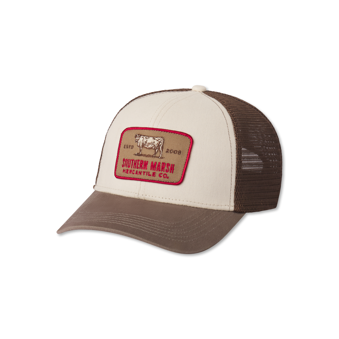 Our Trucker Hat - No Bull brings a touch of rustic charm to your everyday style. Featuring a bold bull logo patch with "Southern Marsh Mercantile Co" text, this hat captures the essence of a classic cattle company design. The mesh back offers breathability, while the adjustable snapback closure provides a customizable fit. Perfect for outdoor adventures, casual outings, or showing off your love for timeless Americana-inspired style.