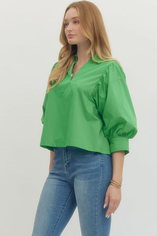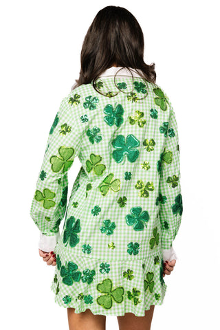 QOS Green & White Plaid Rhinestone Shamrock Collar Cotton Dress