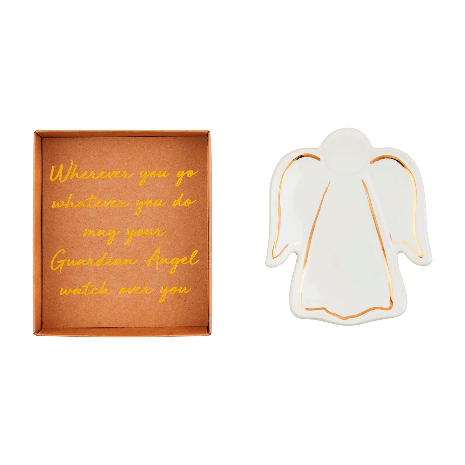 The Stripe Wing Angel Tidbit Dish is a stunning piece made from high-quality stoneware. Its unique angel shape adds a touch of elegance to any table setting or home decor. The dish features a hand-painted electroplate rim, which adds a beautiful and eye-catching detail. Made from dolomite, this tidbit dish is not only visually appealing but also durable and long-lasting. With dimensions of 5" x 4 1/2", it is the perfect size for serving small snacks, candies, or even jewelry. Whether you're hosting a party or simply looking for a charming addition to your kitchen, the Stripe Wing Angel Tidbit Dish is a must-have item.