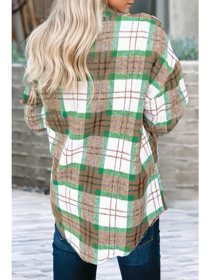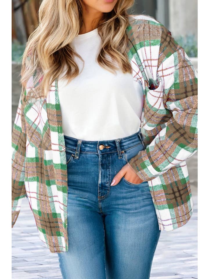 Christmas Plaid Casual Flannel Shacket • Khaki
