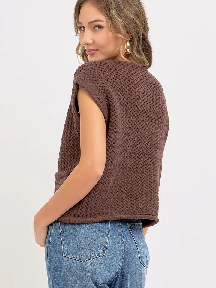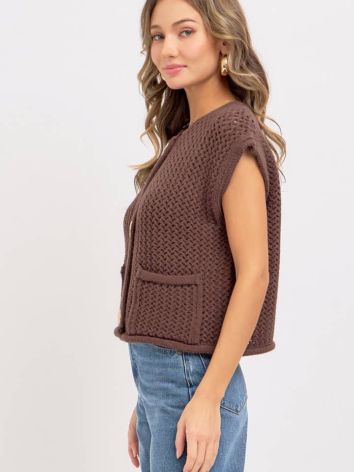 Mazie Button Closure Knit Vest Top • Brown