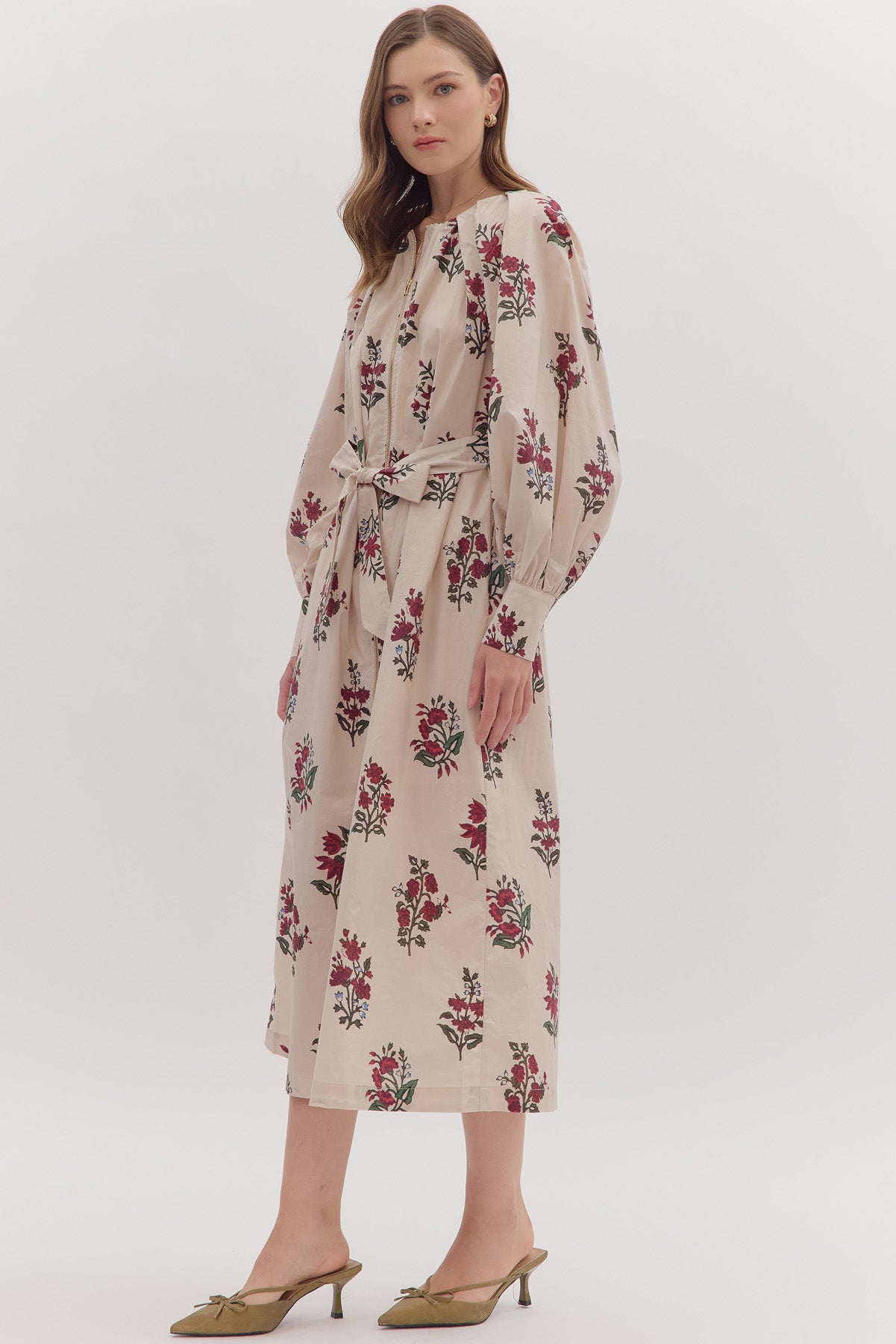 Monique Long Puff Sleeve Belted Zip Dress • Ecru