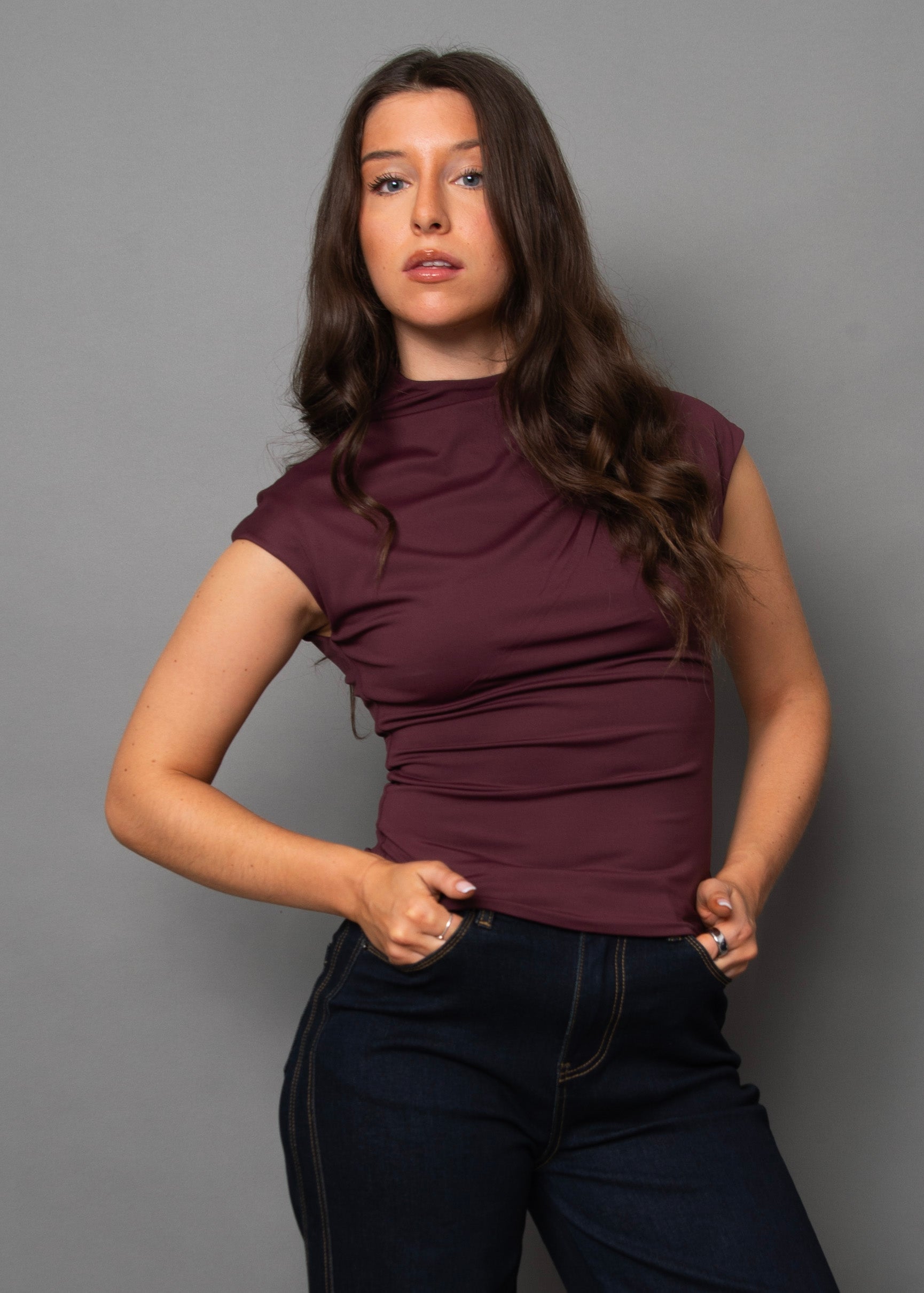 Slip into effortless elegance with the Yvette Funnel Neck Draped Top in rich prune. This double-lined draped tank features a graceful funnel neckline that drapes beautifully, creating a flattering silhouette. The structured double lining ensures a polished look without sheer concerns, while the flowing fabric moves with you throughout your day. Perfect for layering or wearing solo, this versatile piece transitions seamlessly from casual outings to dressed-up occasions. A wardrobe essential that feels as good as it looks.
