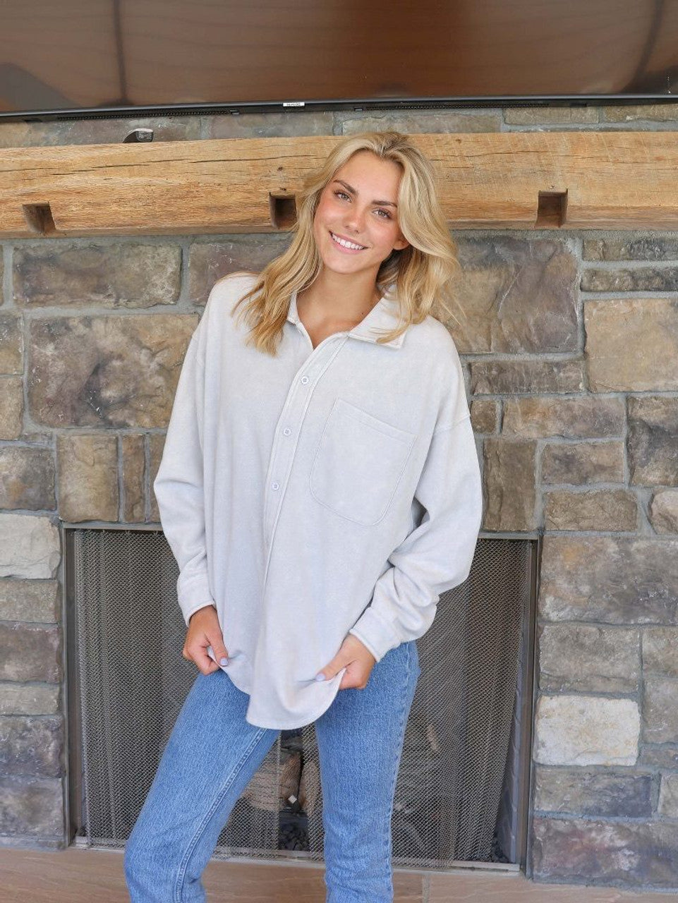 Our acid wash shackets are a soft and stylish piece that you can wear all season long. This style features a button down closure, oversized silhouette, and a front chest pocket. Made of 60% cotton and 40% polyester.