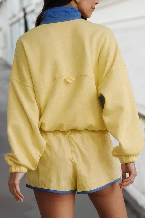 Brighten your day with this playful Colorblock Two-Tone Top & Shorts set in sunny yellow. Designed for comfort and style, the vibrant colorblock design adds a fun twist to your casual look. Perfect for lounging or sunny adventures, this set lets you stand out while staying cool and comfy all day long.