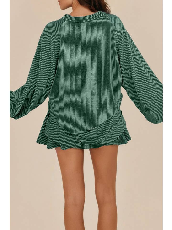 Bring some fun to your wardrobe with the Keep In Touch Two Piece Set in green. Featuring a cozy corded lantern sleeve top paired with a flattering high waist skirt, this duo is perfect for effortless style with a playful twist. Mix and match or wear together for a look that’s as cheerful as you are!