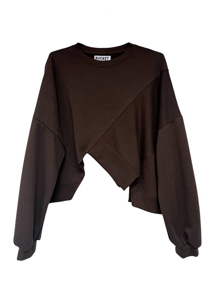 Meet your new favorite sweatshirt with a twist. This black crew neck features long drop-shoulder sleeves and playful asymmetric details that set it apart from the ordinary. Its oversized fit ensures cozy comfort while making a bold style statement. Perfect for lounging or stepping out with effortless flair!