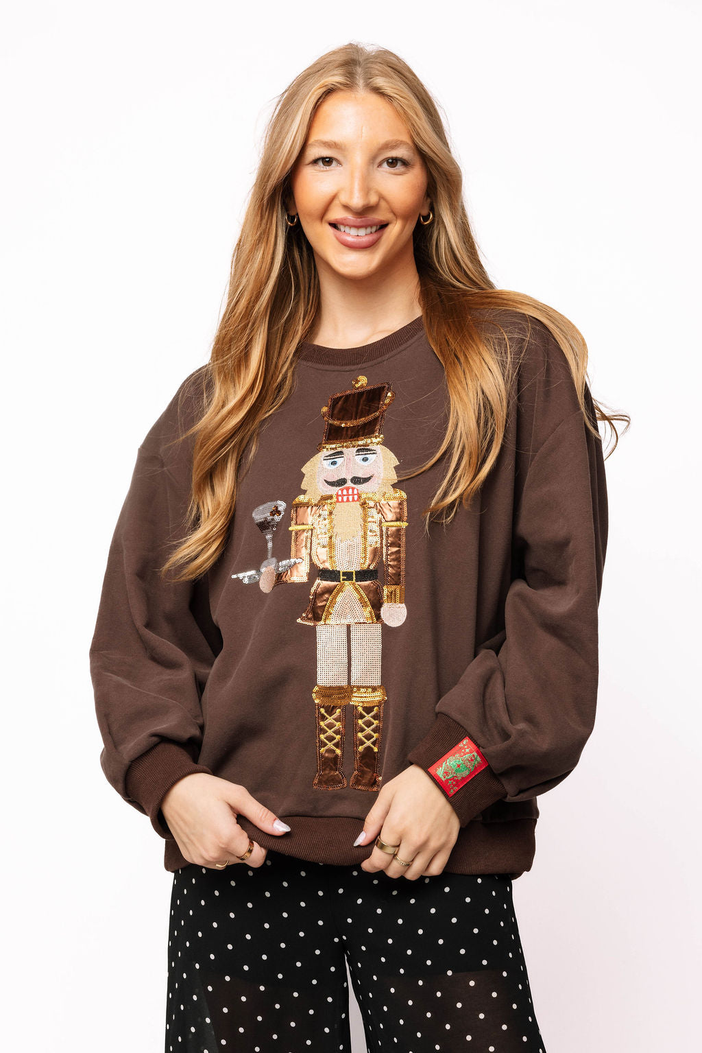 Brown Espresso Martini Serving Nutcracker Sweatshirt • Brown