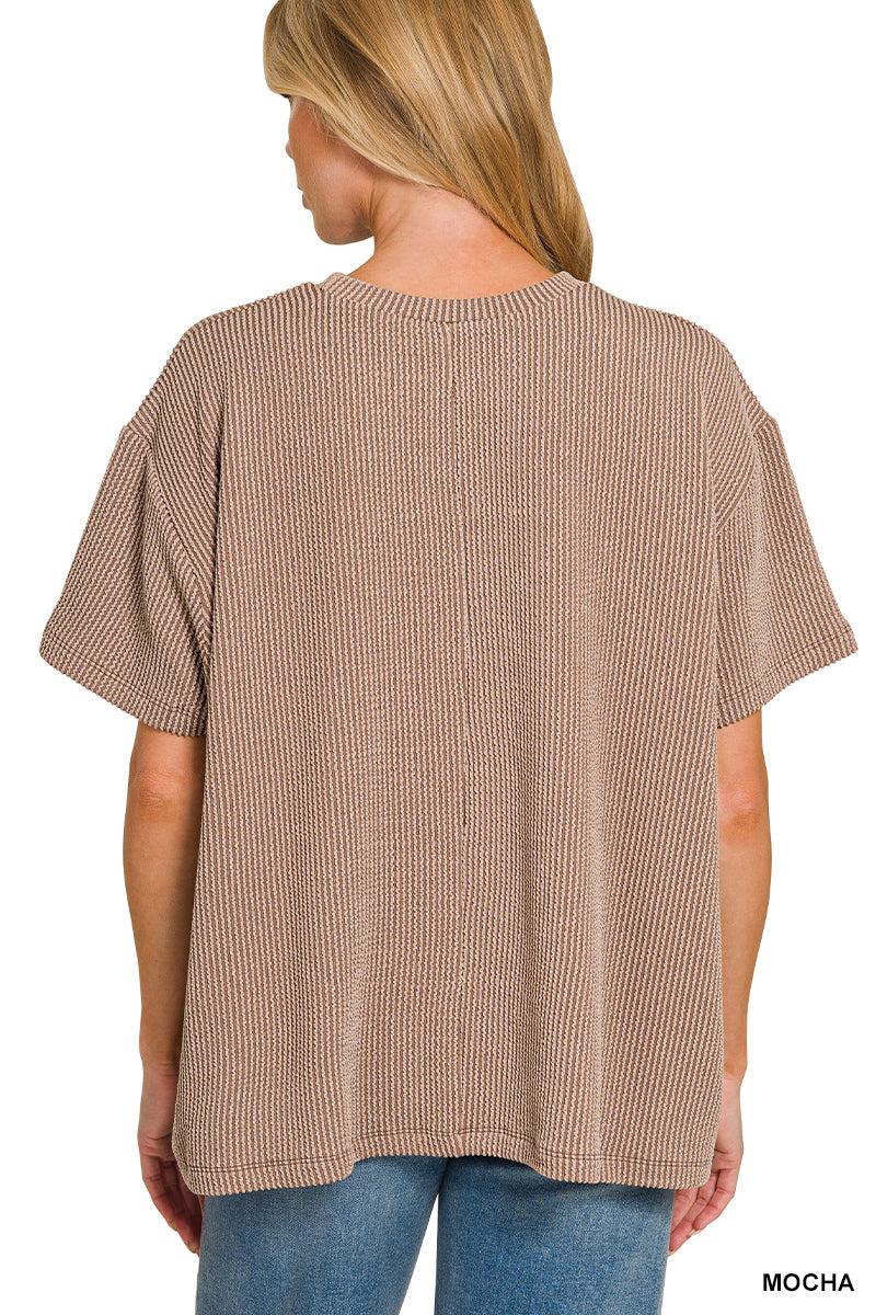 Luna Ribbed Short Sleeve Pocket Top • Mocha