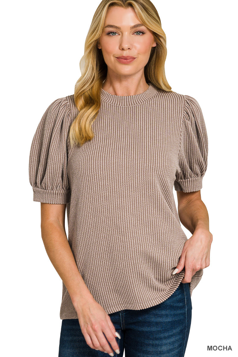 Tiana Ribbed Puff Sleeve Top • Mocha