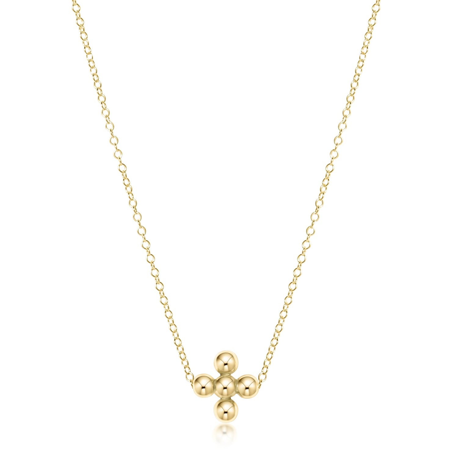 16" Necklace Gold • Classic Beaded Signature Cross Gold • 3mm Bead Gold