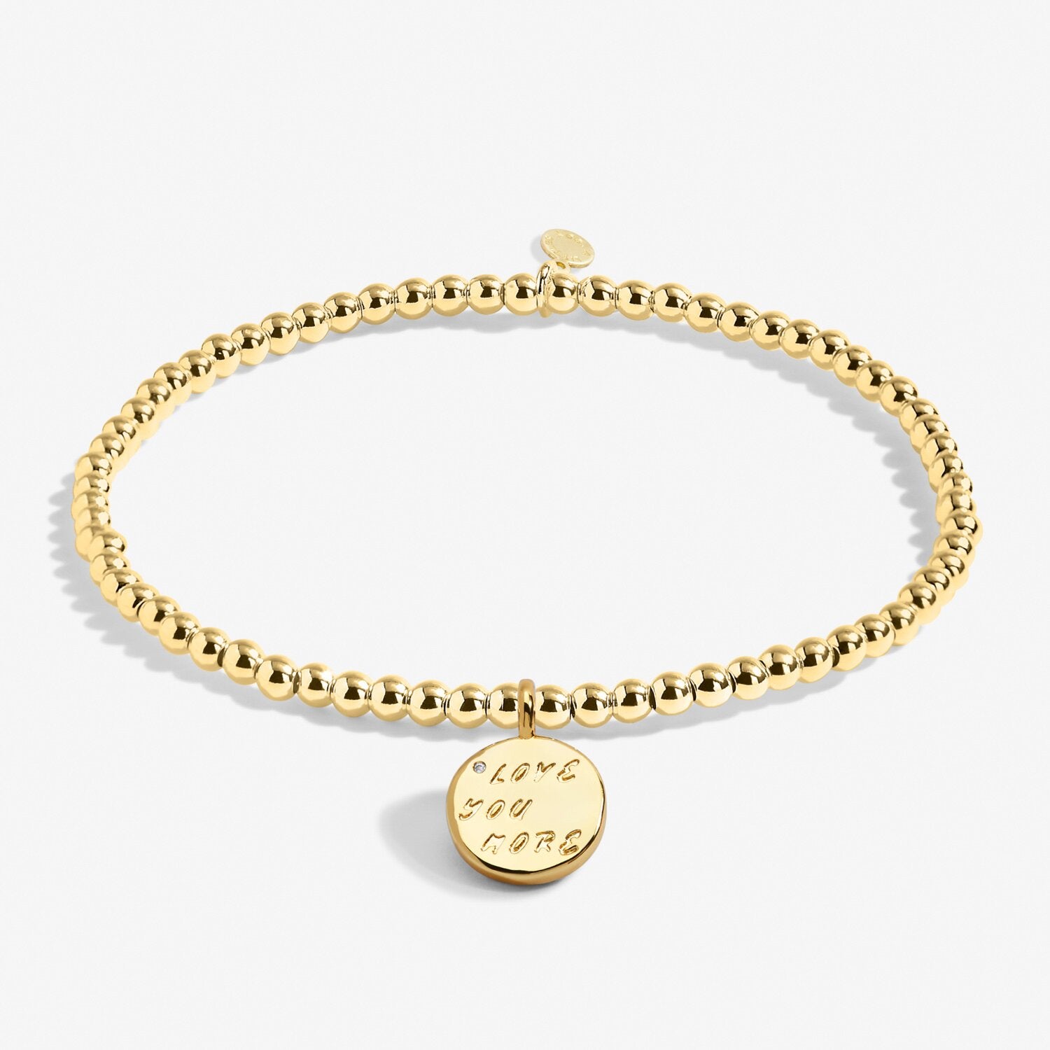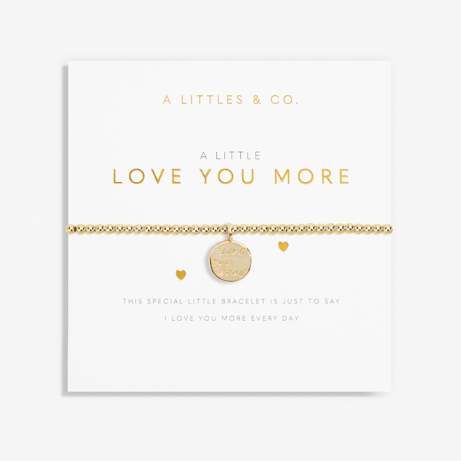 Say hello to one of the sweet sentiments in our world-famous A Little Collection! Our A Little 'Love You More' Bracelet In Gold-Tone Plating features a captivating stretch design and a precious coin charm. Wrapped around one of our stylized cards and framed with a sweet sentiment, this piece is sure to make a standout gift and a wonderful addition to your loved one's collection.