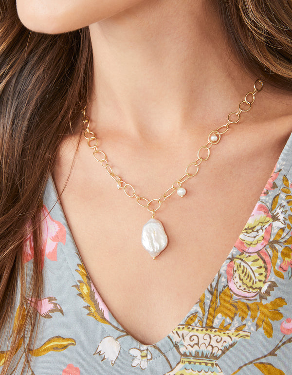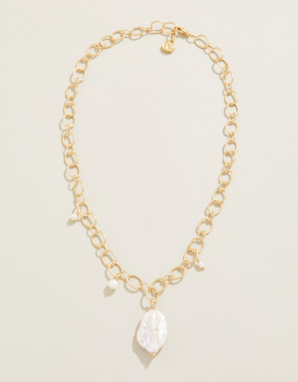 Our Appoline Necklace is made to be as unique as you with freshwater pearls dangling from an 18kt matte gold plated custom oval link chain.