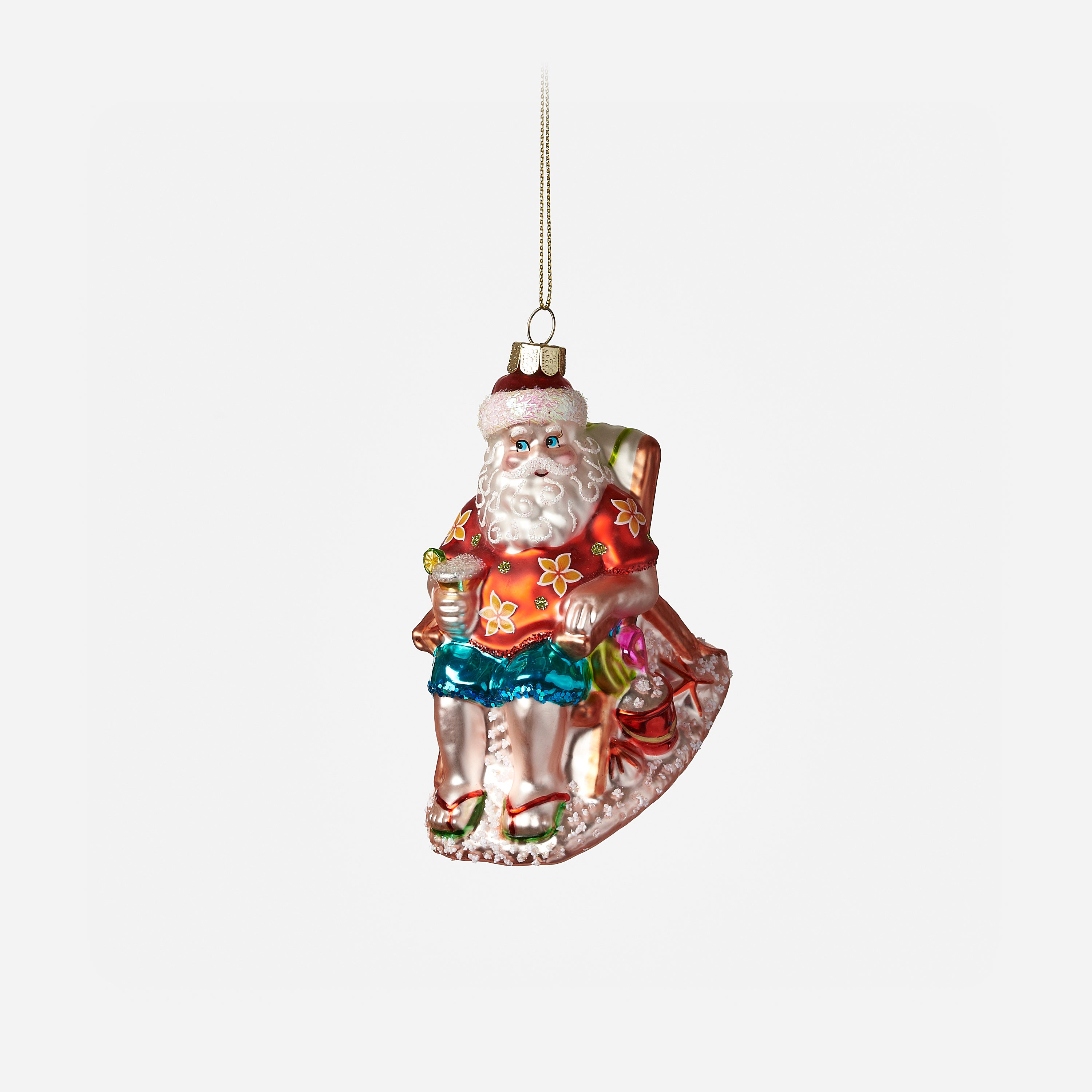Add a splash of holiday fun with the Beach Bum Santa Ornament. This playful glass ornament measures 4 inches, capturing Santa’s chill beach vibe perfectly. Hang it on your tree to bring a sunny twist to your festive décor and spread some seaside cheer all season long.