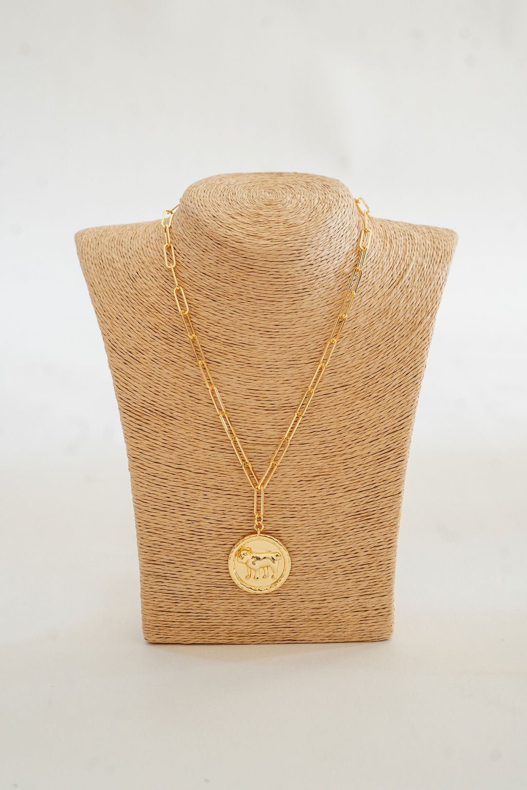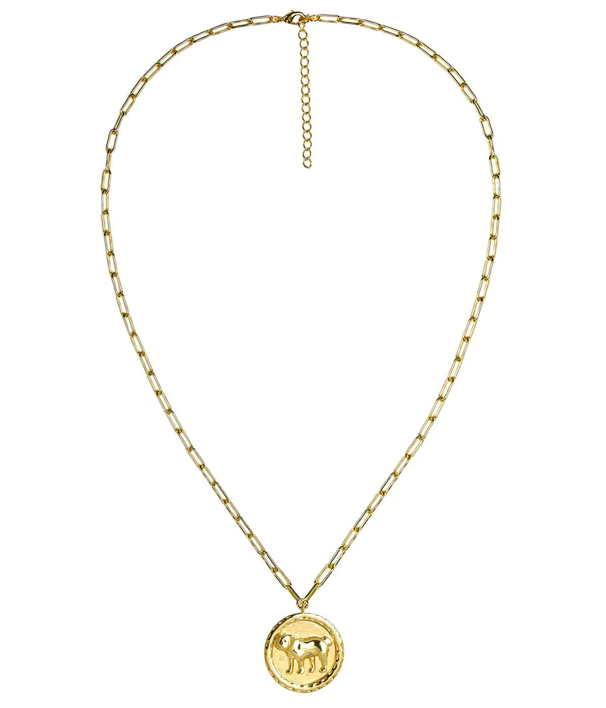 Bulldog 3D Disc Coin Necklace - 18k Gold Plated