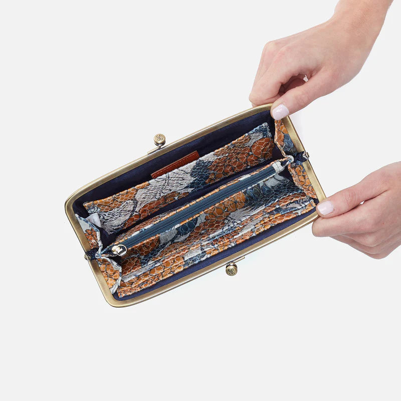 Cora Large Frame Wallet has a frame clasp closure, interior organization for your cards and cash and a wristlet strap for grab-and-go moments.