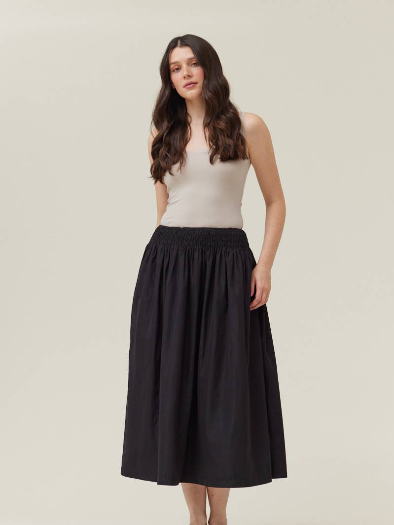 Take on the world in the Daria Smocked Waist Skirt! A midi skirt with a smocked waist, it offers both comfort and style. Perfect for a daring spirit, this skirt will have you ready to conquer anything with its bold design and flattering fit. Don't miss out on this adventure!