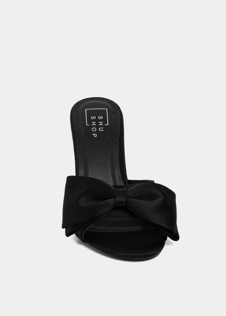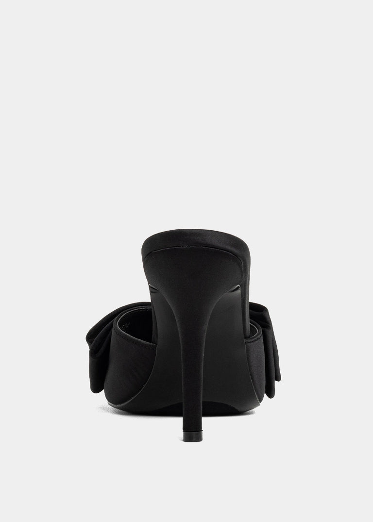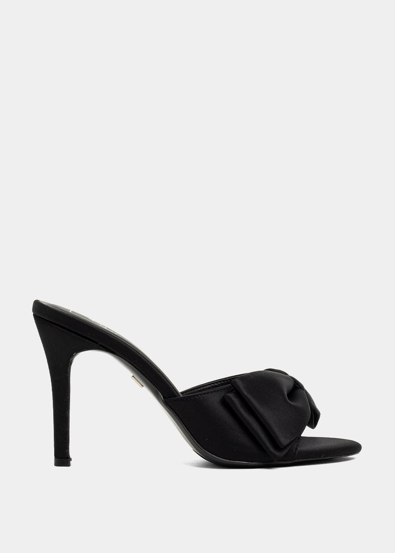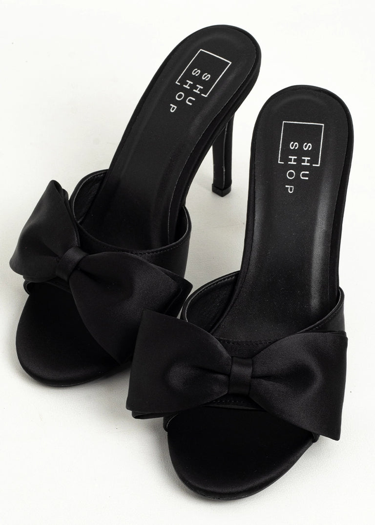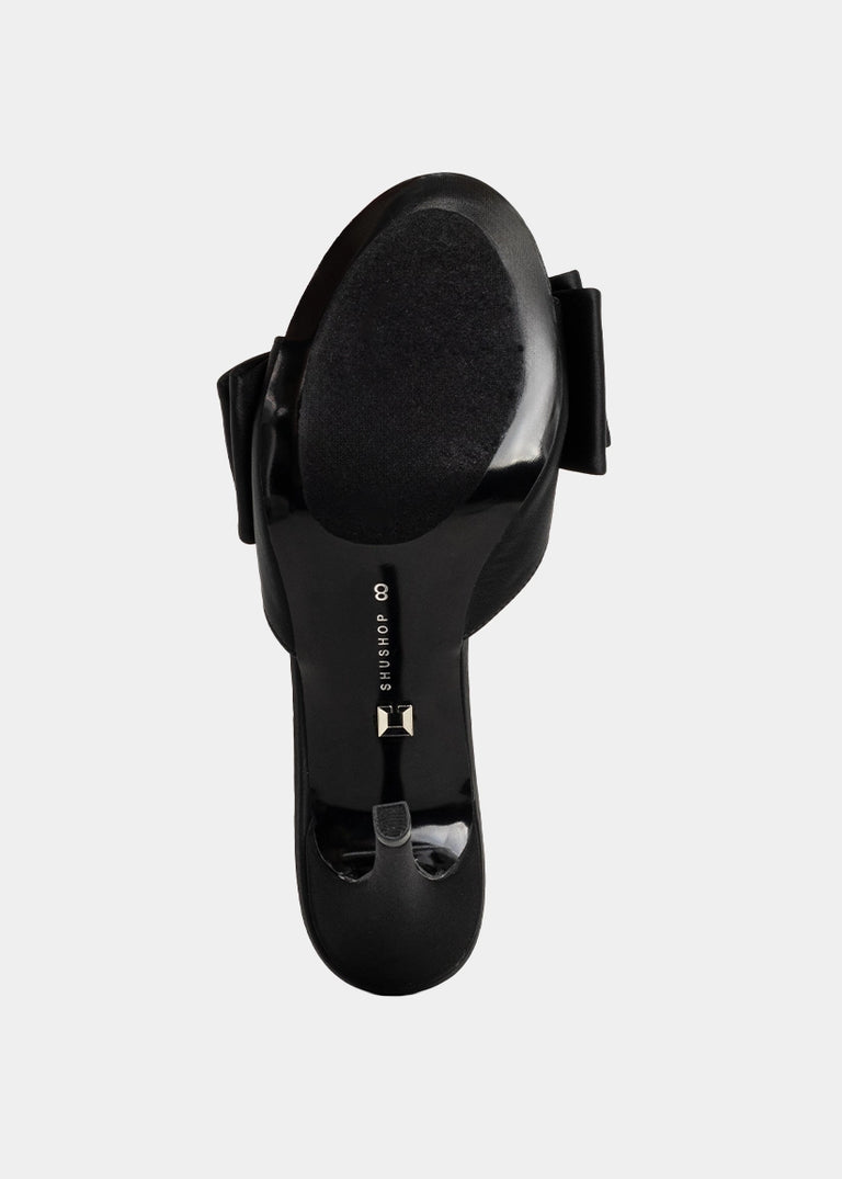 Minimal effort, maximum drama. The ELENA heel in Black is your go-to stiletto for every after-dark plan. With its sleek satin-like finish, bold oversized bow, and slim heel silhouette, this slip-on mule delivers a sharp, modern take on femininity. Equal parts sultry and chic, it’s the kind of shoe that elevates your outfit before you even say a word.