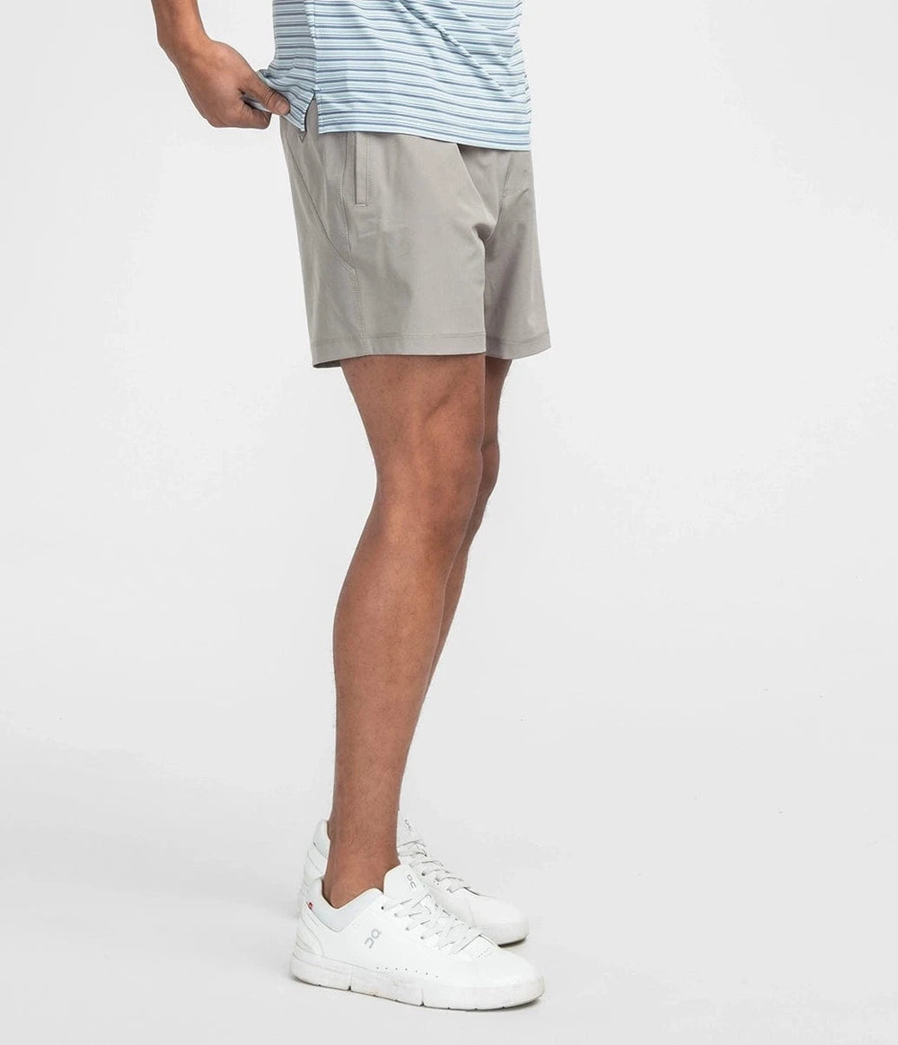Shane is 6’2” and is wearing a large Everyday Hybrid Short in Cloud.